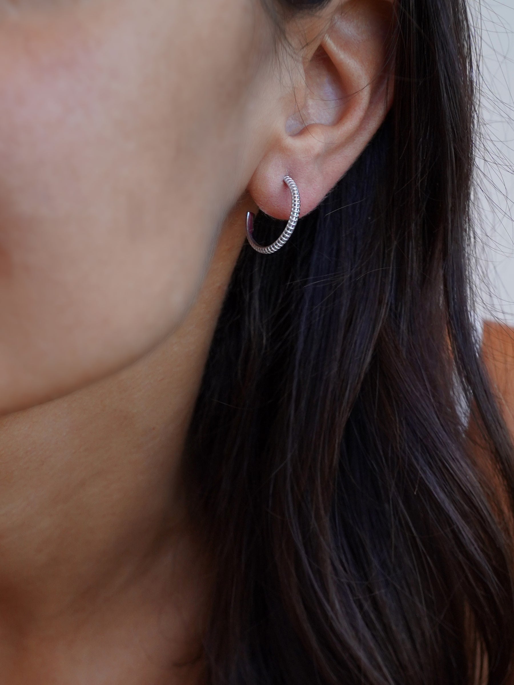 Semita Hoop Earrings - Rhodium Plated 925 Sterling Silver