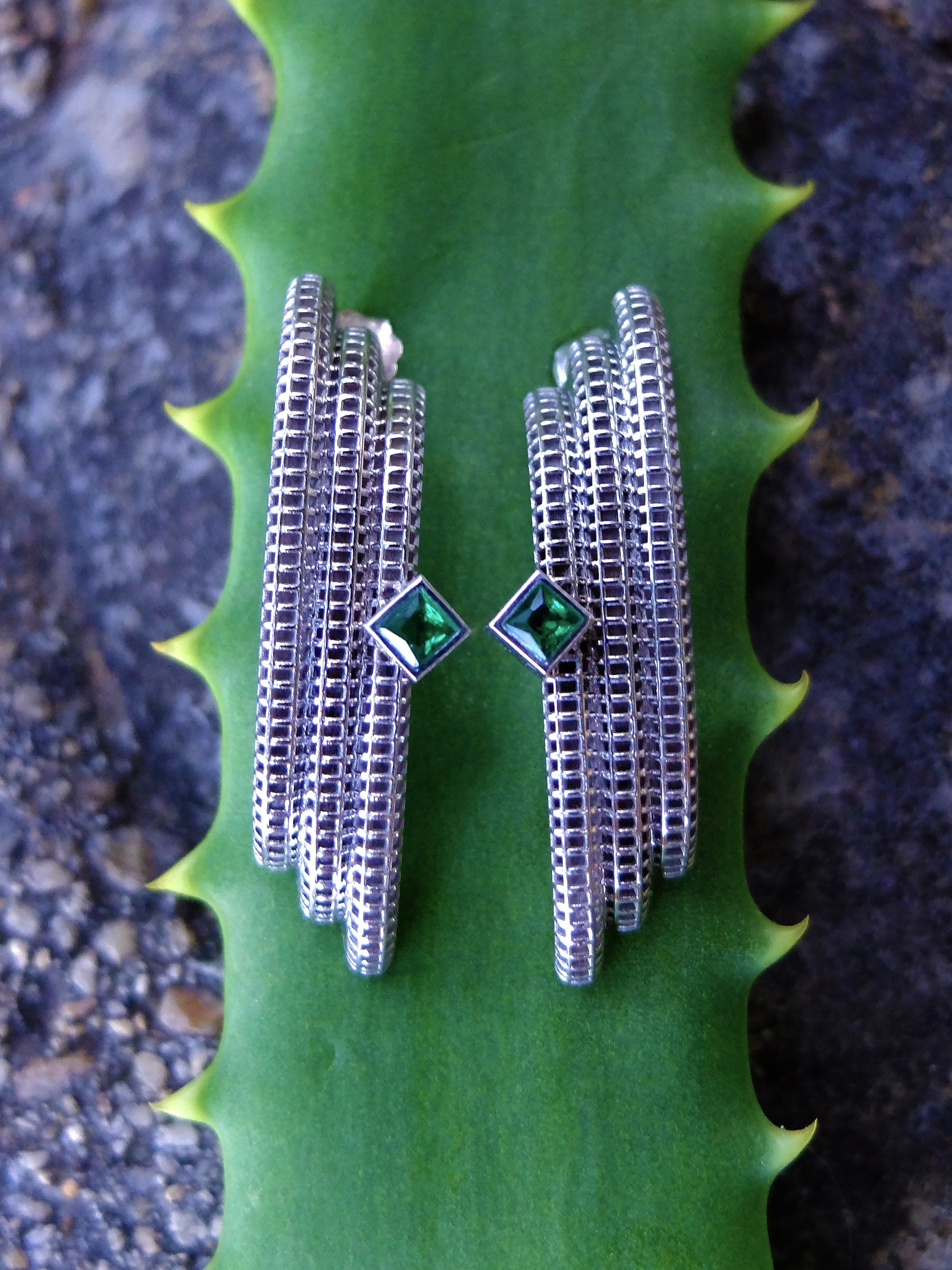 Furore Küpe - Yeşil Zirkon Taşlı 925 Ayar Gümüş