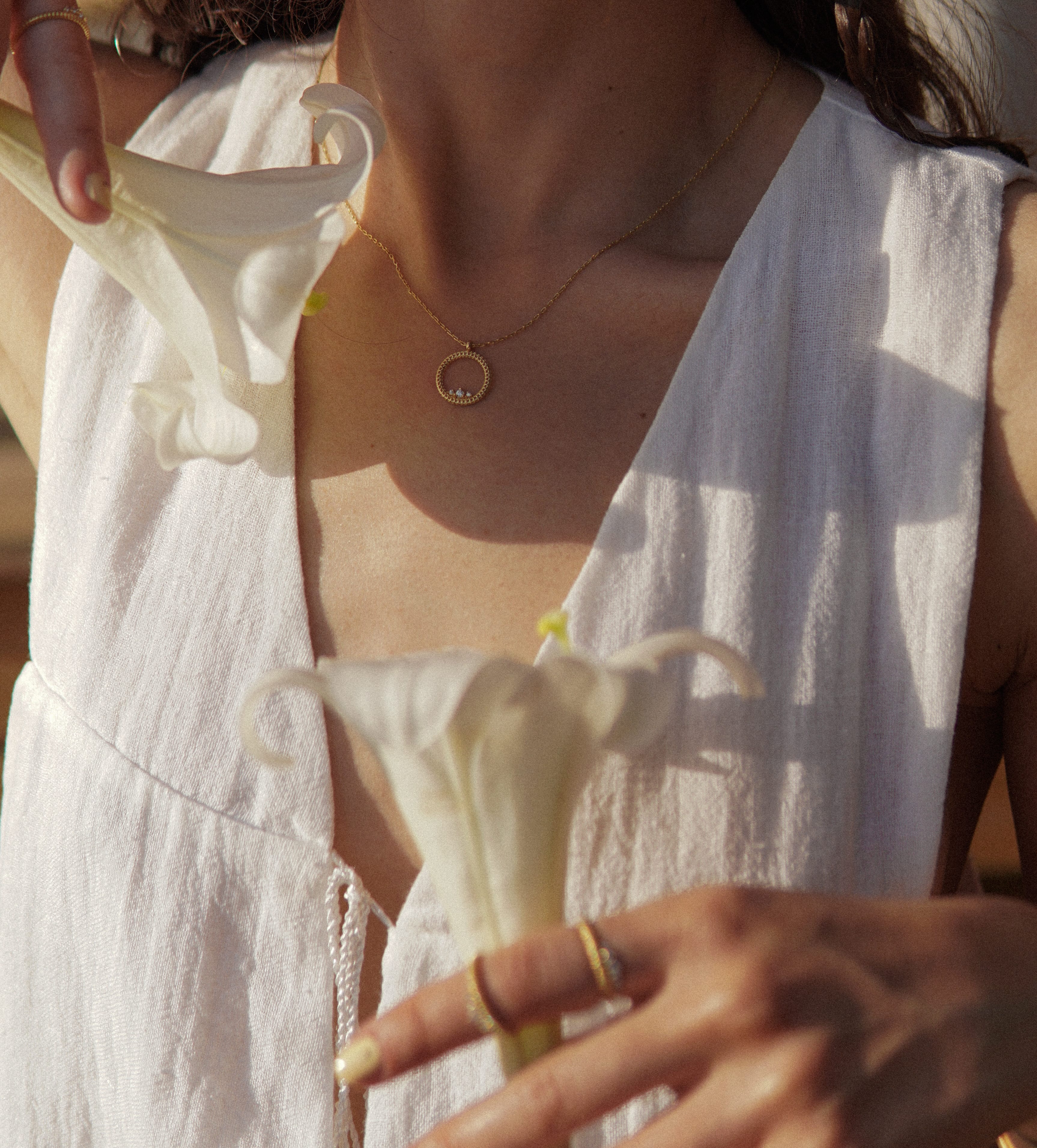 Halka formu ve PACAL imza dokusunun buluştuğu Princess Semita Kolye, üç zarif taş detayıyla boynunuzda ince bir ışık halesi yaratır. Minimalist çizgileriyle sofistike bir duruş sunan bu tasarım, gündüzden geceye her anınıza eşlik eder. Her detayıyla özenle işlenen bu kolye, sevdikleriniz için de değerli ve unutulmaz bir hediye alternatifi.